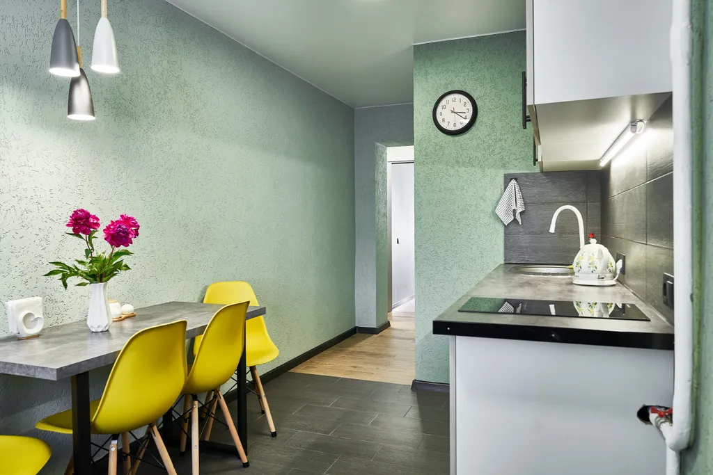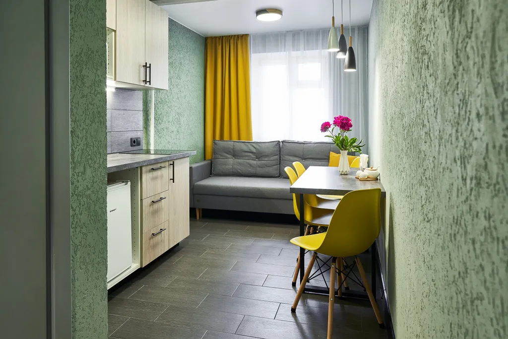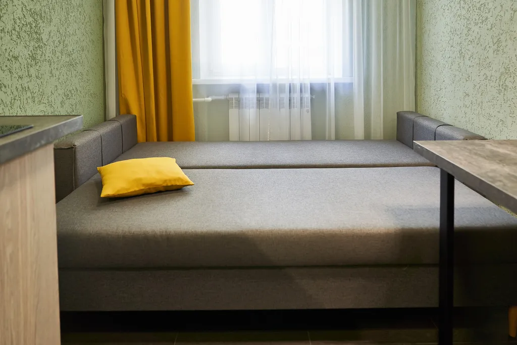 В квартире комфортно могут разместиться 4 человека или пара с двумя детьми.
