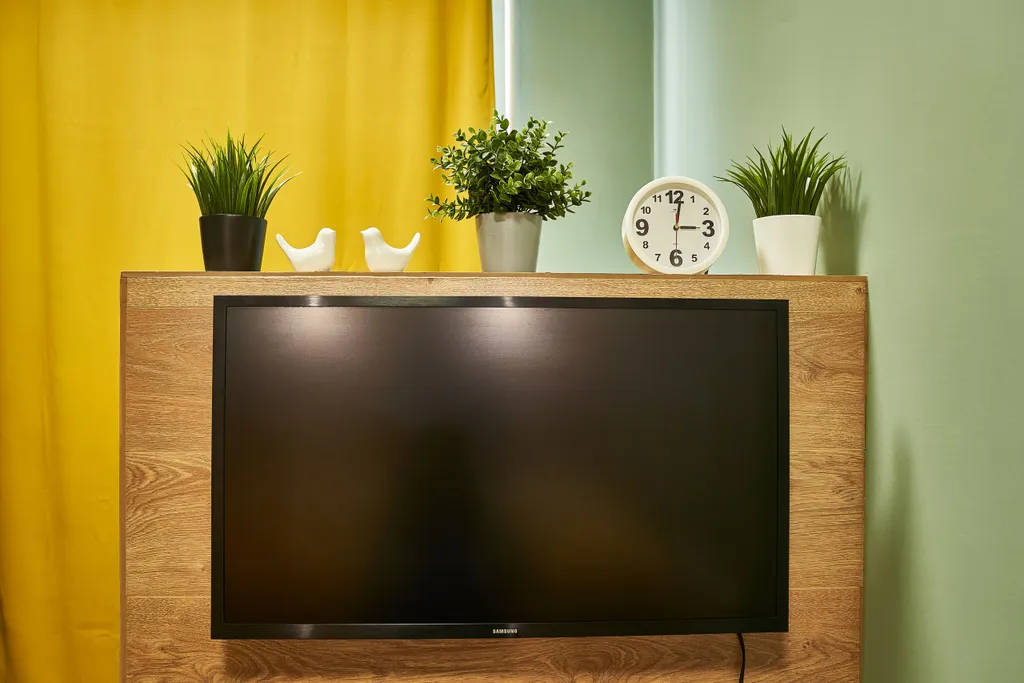 - Телевизор с плоским экраном и спутниковыми каналами,