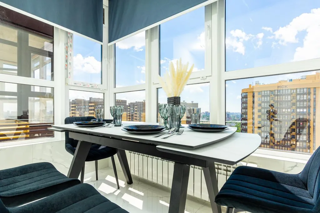 Новые апартаменты люкс с панорамным видом с высоты птичьего полета на 21 этаже с джакузи для двоих. Просторная гостиная с выделенной обеденной зоной и отдельной спальной комнатой.