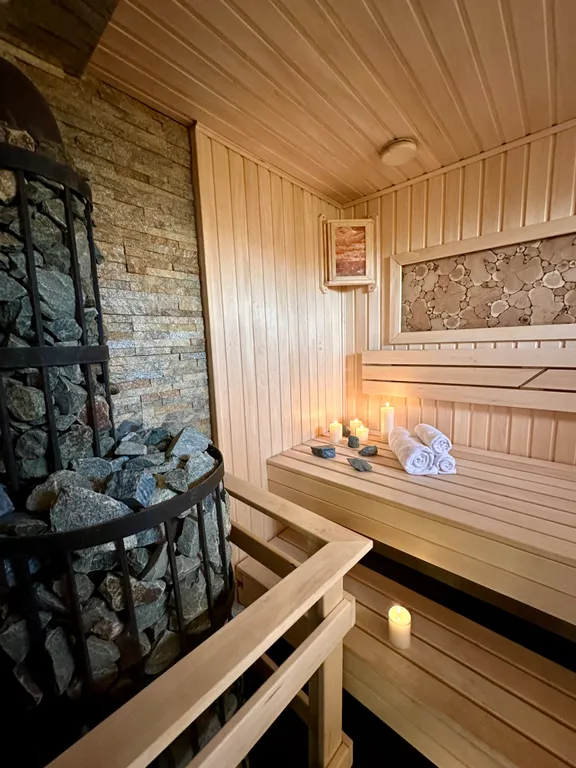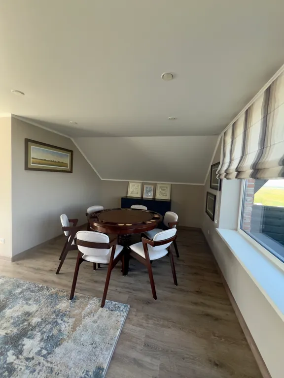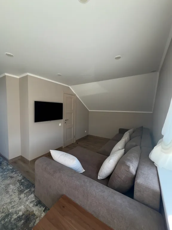 Дом оборудован всем необходимым. 1 этаж: большая гостиная с выходом на веранду, кухня(оборудованная кастрюли, тарелки, ножи и т. П. ), столовая зона, санузел, парная на дровах. 2 этаж: 2 спальни(двуспальные кровати, матрас средней жёсткости) с санузлом. 3-й этаж - комната отдыха (удобный раскладывающий диван)