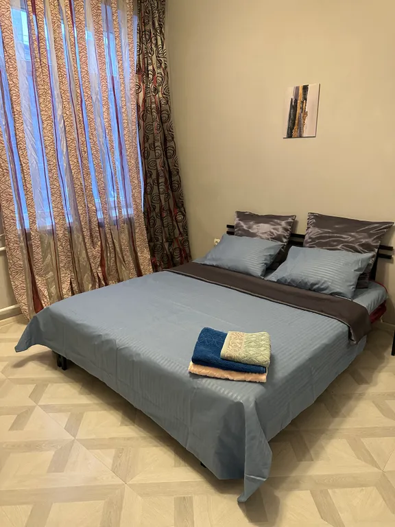 В квартире 2 спальная кровать, с ортопедическим матрасом, дополнительно теплые пуховые одеяла, которые редко нужны, квартира очень теплая, в другой комнате 2 двухспальных дивана, постельное бельё, мягкие, мохровые полотенца, телевизор, утюг, гладильная доска, кондиционеры, 2 балкона