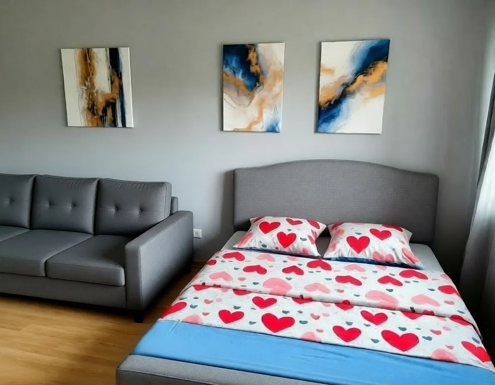 Большая 2-спальная кровать и удобный раскладной диван.