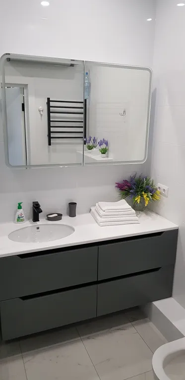 В квартире есть все необходимое. Чистое постельное бельё, воздушные чистейшее полотенца, посуда. Всегда есть лёд в холодильнике! Идеально для пары!! Кровать 160×200 с ортопедический матрасом!! Есть раскладной диван с ортопедическим матрасом, можно родители и 2 детей например. Плотные шторы блек аут позволяют выспаться!!!
