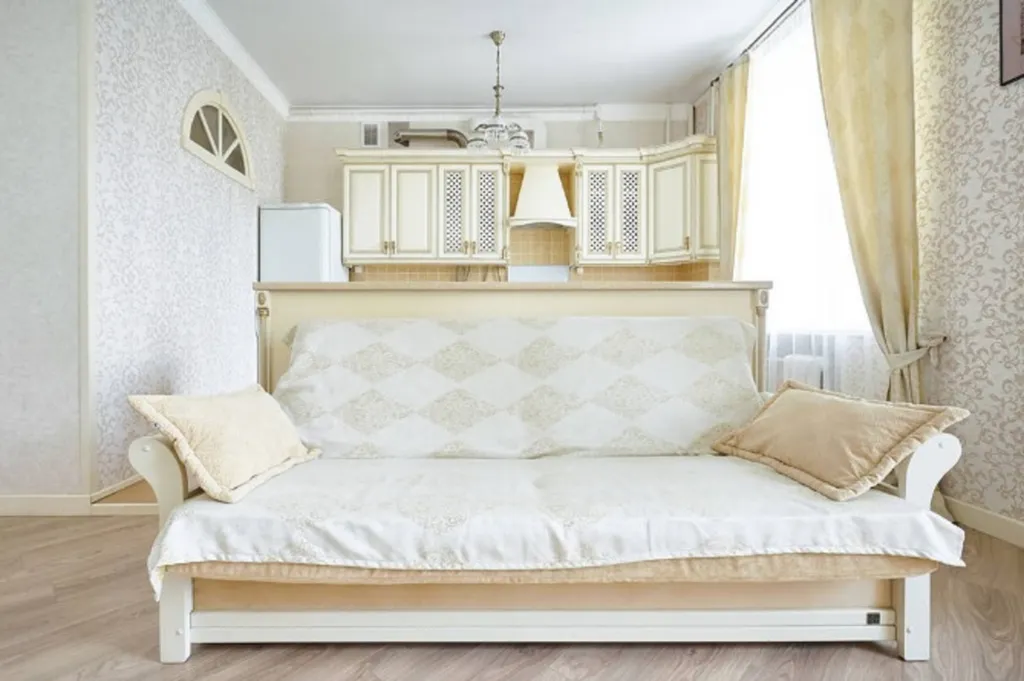 Окна спальни выходят во двор, поэтому в квартире всегда спокойно и тихо, а утром и вечером слышен звон колоколов кафедрального собора