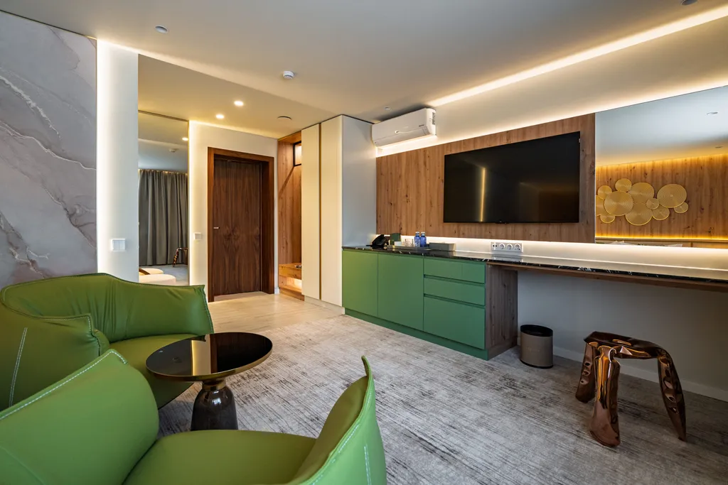 В стоимость номера входит бесплатное посещение бассейна с понедельника по четверг, с пятницы по воскресенье — 30% скидка.
