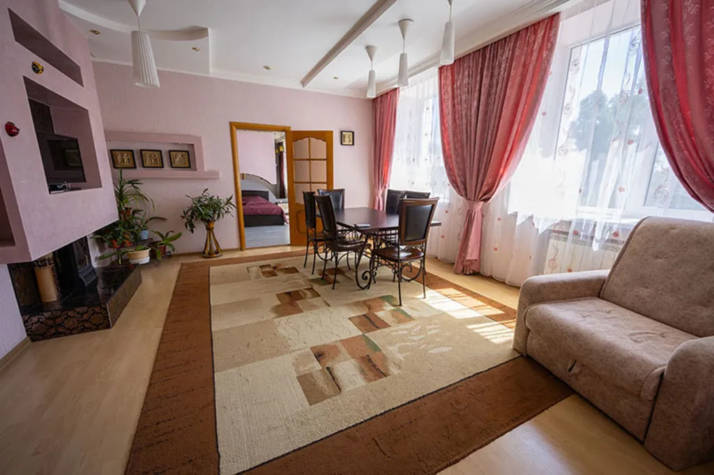 Мягкая мебель, меблированная гостиная, плазменный телевизор, сплит-система, фен, халаты, тапочки, туалетные принадлежности. Современная душевая кабина поможет снять усталость.
