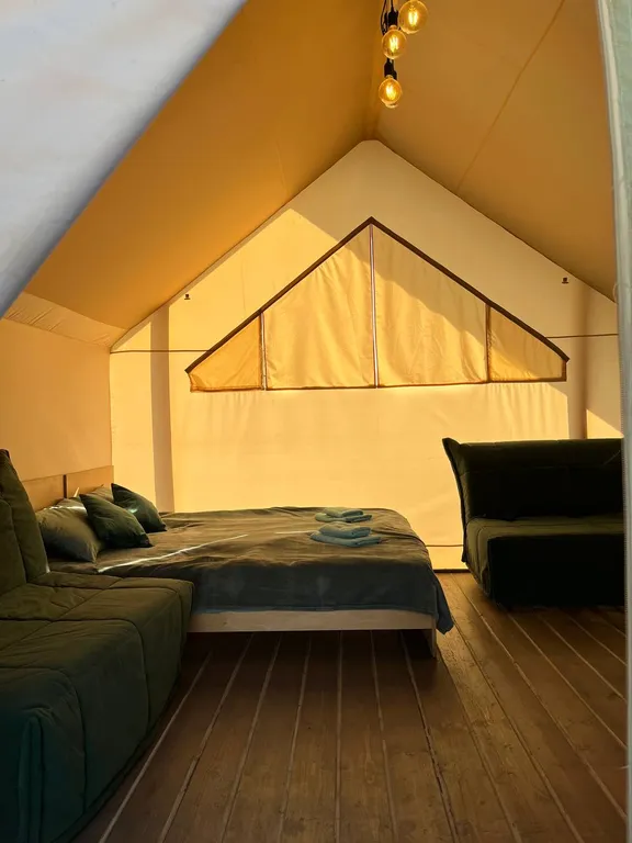 2 дивана-кровати со спальным местом 120 см. На 190 см., дом рассчитан на 4 взрослых и 2 детей