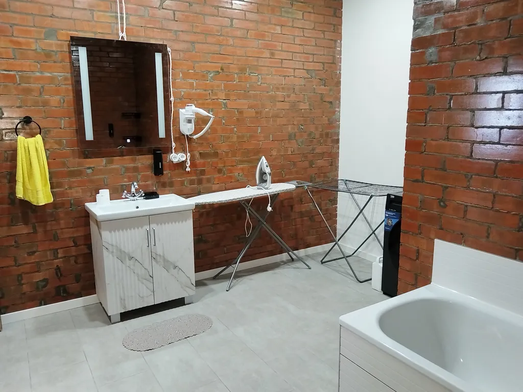 -2 ванные комнаты с феном и средствами гигиены. В одной так же есть стиральная машина, порошок, сушилка для белья, утюг и гладильная доска.