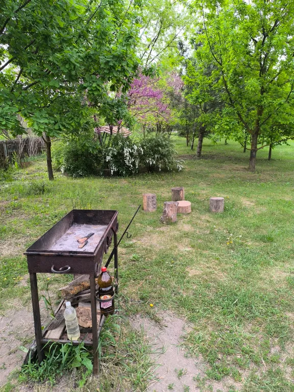 Большой зеленый участок. Огорожен. Тишина и уединение.